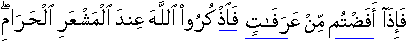 when you have dispersed from Arafat: Ground of Congregation of Hu'j, get busy in the remembrance