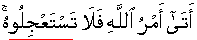 16:01;30:40;39:67]o Glory is for Him/His pleasure is the focus of all effort; and He has kept Himself Exalted above all what they conjecturally associate with Him. [10:18] The أَمْرُ [Grand Quran announcing sounding of true big bang any moment] of Allah has since been given/reached, therefore, you people should not seek hastening that [day of reckoning/account]. [Same pronouncement in same words in