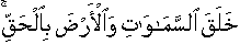 6:73;14:19;15:85;16:03;29:44;39:05] He originated/created the Skies and the Earth for a determined purpose/as an evident fact [and for appointed duration]. [Same pronouncement in