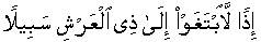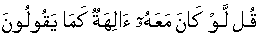 You, the Messenger [Sal'lallaa'hoalaih'wa'salam] pronounce, "had there been along with Him other various iela'aha as they people conjecturally describe o in that case those so called iela'aha would certainly have sought a passage towards the Holder of Supreme Sovereign Seat/Throne [beyond the Skies of universe]". [17:42]