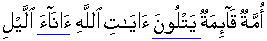 • A group [believers] are steadfast;  they read and recite the Aay'aa't of Allah: Unitary Verbal passages of Grand Qur'aan word by word during the hours of night;