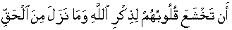 • That their hearts may become soft and humble for the "Reminder of Allah" and for that which has since been communicated in the Infallible Discourse: Grand Qur'aan