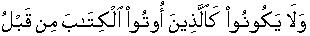 • And they should not become like those whom the Book was given earlier in time before them,