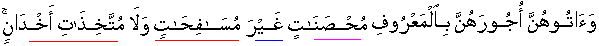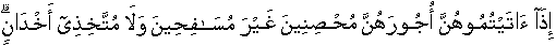 (مقاييس اللغة) الخاء والدال والنون أصلٌ واحد، وهو المصاحَبَة. That it signifies association, accompaniment. Lane's Lexicon: He was, or became, his خِدْن [or friend; or his secret, or private, friend;]: he associated, or kept company, with him as a friend: or [simply] he associated, or kept company, with him. Semantic Domain: Social interpersonal relationships—Root: ء ن س Sub domain: Sex - Concubine - Illicit relationships Related concepts: Women, Wife, Matrimonial Bond, Prostitutes Root: ز و ج Its meanings are explicit by the context where it is used.