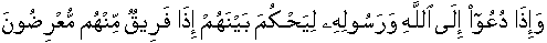 And when they are called towards Allah the Exalted and His Messenger so that he may adjudge between them, at that point in time a group of them knowingly refrains. [24:48]