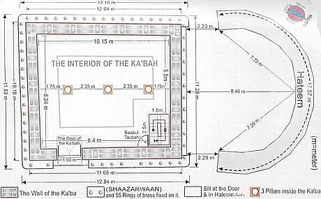 The adjectival phrase: الْبَيْتَ الْحَرَامَ is: بدل equivalent appositive for: الْكَعْبَةَ which is the first object of preceding verb. The fact of equivalent appositive is also supported by inner-referencing that both are mentioned twice in the text of Qur'aan. The adjectival phrase is mentioned in 5:02 and 5:97 and proper noun: الْكَعْبَةَ is mentioned in 5:95 and 5:97. The protuberance, projection is the irreducible semantic feature of Root:: ك ع ب. This feature is also physically present in: الْكَعْبَةَ . The physical structure renders the people, moving anti clockwise around it, in an elliptical circumference - orbit. This way they synchronize their selves with the entire universe. It is the irreducible effect of the perception - meanings embedded in the Root. The following is the sketch of: الْكَعْبَةَ: