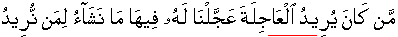 this worldly life, Our Majesty hastened for him in it what We decide for the one for
