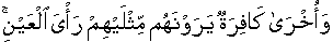 The geographical features of the area and peculiar locations of the two armies created this visual illusion for both. It benefited the one, Muslim Army, and caused a great psychological setback to the advancing Army of infidels. When perception and thought of immediate pleasure and solace suddenly disappears, in short span of time, overtaken by adverse perception, the aftereffect is breaking for nerves. Their first impression, first visual illusion causing pleasant feeling shortly disappeared when they further advanced towards Muslim Army, and another visual illusion overtook them. They started perceiving the Muslim Army double their size. This is earlier told: