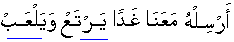 You send him [Yu'suf alai'his'slaam] ] with us tomorrow that he should enjoy eating and drinking in greenery and playing, whereat we will certainly be taking care guarding him.".[12:12]