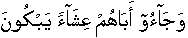 Afterwards they came back at early night to their father; they were weeping. [12:16]
