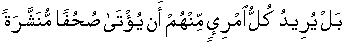No, [the excuse for running away is this] Everyone of them desires/demands to be given papyri spread/spelled out. [74:52]
