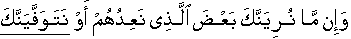 • Know it; if in future Our Majesty causes you the Messenger [Sal'lallaa'hoalaih'wa'salam] to witness-see with eyes a part of Last Day which We are promising to them; or in future We cause you to become segregated from people by natural death before that Day: