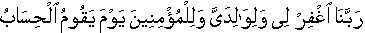 • Our Sustainer Lord, Kindly grant forgiveness for me and for my biological mother and father and for the believers on the day the accountability will be held." [14:41]