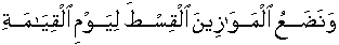 • And Our Majesty will lay down the Scales of adjudging - evaluation - appreciation - weighing - Equitythe same Weighing Scale: Books of Allah revealed in timeline, for the Day of Resurrection,