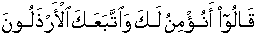 • They the ruling elite replied, "Should we believe for you while only they have followed you who are vilest - riffraff among us." [26:111]