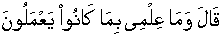 • Noah [alai'his'slaam] said, " I have no knowledge about what they people were doing in the past; [26:112]