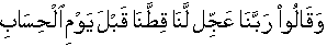 • And they said: "Our Lord! hasten to us our share of punishment before the Day of Accountability!" [38:16]