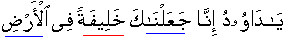 • "O Da'wood [alai'his'slaam] indeed We have appointed you the Ruler in the country;