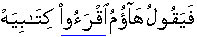 • Thereat he will say to others: "Here, you people read my record; [69:19]