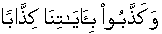 • And they publicly contradicted Our Aa'ya'at [verbal presentation of information, facts and knowledge in the Book] declaring as false and conjecture. [78:28]