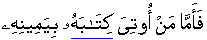 • Thereat as for the one who is given his book/written record in his right hand[84:07]
