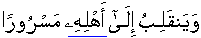 • And he will cause himself to return [with some protocol escort] to his household, delighted. [84:09]