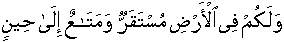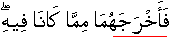 Prepositional Phrase جار و مجرور Separable Preposition (حرف الْجر) + Suffixed pronoun: third person; masculine; singular, genitive state. The preposition and its object noun constitute what is called a prepositional phrase, in Arabic grammar: جار و مجرور. The preposition: فِي is separable. When its object noun is a pronoun, the pronoun is suffixed to it, otherwise it appears separately from its object noun. The preposition فِي signifies rest in a place or during a time, and motion into a place. This signification is then transferred to the relation subsisting between two things, one of which is regarded as the place in which the other is, or happens, or into which it goes or is put. The suffixed pronoun is for third person, singular, masculine referring to antecedent object. The preposition signifies what is meant in English by in, into, inside, among, within, about, and concerning. It is also used to join the company (89:29). A prepositional phrase is neither the subject nor the predicate in a sentence. Identifying prepositional phrases is most important skill and critical for identifying the main subject and verb of a sentence. The true subject, predicate and verb of a sentence can never appear within a prepositional phrase. It is important to determine the element in the sentence to which a prepositional phrase relates. It has spatiotemporal signification: