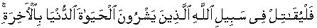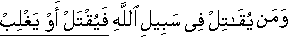 the cause of Allah the Exalted whereby if he is slain or turns victorious-overpowers