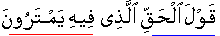 Qaulal-Haq (it is a statement of truth) about which they doubt (or dispute). [19:34]