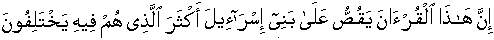 Indeed this Grand Qur'aan verbally relates upon Bani Iesraa'eel step by step—event by event—footage of real life events of past/their history about most of which they keep vehemently differing. [27:76]