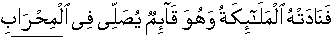 His prayer was accepted whereby the Angels informed him [Zakaria alai'his'slaam] while he stood for performing As-sa'laat: Time Bound Protocol of Servitude and allegiance, in the Secluded Chamber; [Ref 3:39]