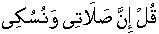 "It is a fact that my Sa'laat: time bound Protocol of servitude and allegiance, and all my physical conduct-protocols, and my entire life and my death are administered exclusively and solely for Allah the Exalted, the Sustainer Lord of the Universes-all that exists. [6:162]