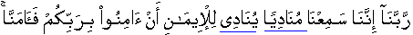 Our Sustainer Lord! Indeed we have listened the caller; he calls for the Faith and directs: "you people believe in your Sustainer Lord". Responding to his call we have heartily accepted-believed.