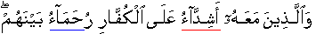 And those who are with him are strongly determined versus the non-believers and amongst themselves are kind hearted