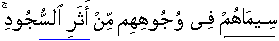 The identification mark of them is apparent within their faces [not forelock; for Angels who identify by marks] as the traces of prostrations.