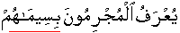 It should be noted that there is no mention of marks or scar on the forehead. "Face" does not mean "Forehead-Forelock". It could not be ruled out that such marks on forehead can fictitiously be made by some for deception of piety before believers. Deep scars on forehead might seem strange since in prostration the weight of the body does not rest on it but is on the knees. Further, it must be noted that the identification mark is not stated as UPON the faces but what is stated is that it is within the faces. It is a known fact that the face has within it around 90 muscles; about 30 of these are purely for expressing and reflecting emotion and inner convictions. These facial marking send many non-verbal signals that are more truthful and reliable than his verbal expressions. The Angels will recognize the Criminals without questioning about their slander and sin. The facial expressions on the Day of Judgment are elaborately narrated in other places.