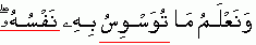 تُوَسوِسُ مضارع واحد مؤنث غاءب low, faint, gentle manner; spoke or talked indistinctively, with confused manner, prompted or suggested; vain things suggested; something that disturbs the mind to confuse and to make stupid, an evil or unprofitable idea, thought, imagination which bestirs itself or occurs in the mind.