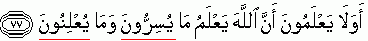 "Allah knows what they hide {withhold in their hearts} and what they say publicly/openly. {Refer 27:25}