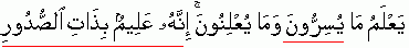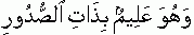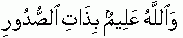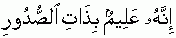 "Indeed Allah is aware/knows the possessions/secrets of chests/hearts"