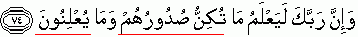 "Allah knows what their hearts hide {hold/conceal} and what they say publicly/openly. {Refer 27:74}