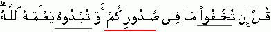 "Say "If you conceal/hide what is in your hearts or reveal it publicly {it is one and the same thing}, Allah knows that" {Refer 3:29}