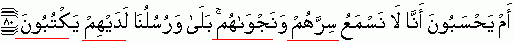 "Or do they think/presume that We do not hear their secrets and their private/secret counsels/talks? Indeed We do; and Our messengers are by them taking and recording their utterances". {Refer 43:80}