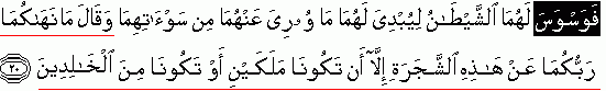 "Then he created for both two of them confusion, so that it may become visible to them what was hidden of their bodies from each other, {how he created the confusion?} and said " The Lord of both of you has not forbidden both of you from this tree except that both of you may not become governors {rulers} or become as immortals/people of permanence