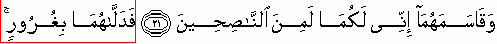 And he swore to both of them that he was their sincere advisor. This is how by deceit he made both victim/fall" {Refer 7:20-22}