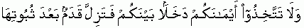 "And do not make your oaths a means of deception amongst people with the result that someone's step may slip after it was firmly established" {Refer 16:94}