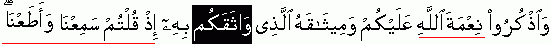 "And always remember Allah's favour upon you and His bond with which He has tied/bound you when you said "We have listened and we have accepted" {We have listened and accepted Quran. This is the only promise, our covenant, our obligation; nothing else} {Refer 05:07} It should be remembered that ONLY ONE ROPE can bind the things compacting/compressing them into one unit/bond/nearness/unity/relationship. It is the Book alone which unites people into a coherent social unit. Additions of traditions/sayings by individual people in time and space only create dismemberment and scattering of the people in groups. It is the most successfully tested technique of the enemies of the Messengers, the Book and Allah to spread material to un-tie people from the bind of Rope of Allah. All the Messengers in time and space came with the objective of Reviving the Message of Allah {Book} and to take them away from the traditions and sayings of their forefathers which had become shackles in their necks restraining independent reflection by intellect. We have cross checked from the Quran that حَبلِ etymologically means "rope or cord" which necessarily implied that it is twisted conveying the concept of strength; and metaphorically transmits the concept of bond, cause of union and connection, means of approach or access to a thing/person/group.