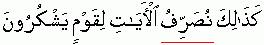 This is how We rotate/centrifuge the verses {to manifest knowledge/information from all angles} so that people my express gratitude/appreciation" {Refer 7:58}