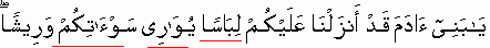 "O You the posterity of Adam, We have sent for you dress/clothing for you to cover/hide/conceal your body and for protection [from heat discharge/outflow]/comfort/" {Refer 7:26}