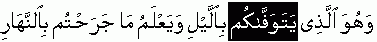 "And He is the One who segregates you in the night and has complete knowledge what you earned by the day.