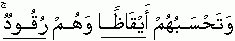 Others said" {Don't be conjectural} Your Lord knows how long you have stayed here" {Ref 18:19} The group of these young men have left a wise lesson for the posterity that nothing should be uttered from mouth on the basis of a conjecture when one does not have the authentic/known evidence/knowledge about what he is saying. A man is known as truthful or a liar only from what he utters and states from his tongue. We pay them our respects. It is evident that these young men were not in a state of ordinary sleep; since in ordinary sleep man's body has the capability of turning its sides. And in their case Allah has said He was turning them on their right and left. This reflects their deep unconsciousness; resembling with the state of comma, which is also evident from the fact that their eyes were constantly open, that would have given an impression to the onlooker as if they were awake. This verse had also given knowledge/information that the sides of those remaining unconscious should be changed by the onlooker. If it is not done the unconscious man will develop decubitus ulcer {pressure sore or bedsore}. We have studied the concept and meanings of words made from Arabic Root ب ع ث which signifies the removing of that thing which restrains one from free action, in relation to restraint caused by death, sleep and deep unconsciousness. Reviving the dead is removing the restraint of death and restoring life, reviving from sleep is awakening a sleeping person and reviving an unconscious person is restoring his consciousness. The restraints, which restrain the freedom of conscious action in relation to death, sleep and deep unconsciousness, are physical/corporeal and visible to senses. There are also non physical/non corporeal restraints, which are no less strong than the corporeal restraints. These restraints are the traditions, customs, sayings and actions passing forward from generation to generation, which become shackles in the collar and raise walls in front and back of a man restricting free action. They make the faculty of mind جَامِدَةً {static} and disable people to reflect and react to new idea/thought and perception narrated to them. Despite being living beings, they have lost the capability of truly listening and seeing since listening and seeing is converted into knowledge only when it has been interpreted, gone through the neurological process of observation and then stored in the memory as a perception. Mere breathing and other physical acts do not reflect, in its true sense, the life of a human being; it is animal life; clinical life. Man has to live in the society. Some sections of the society wish to retain their hold and command over the majority of people. And the psyche of the majority is that it finds little time and has little desire to ponder and reflect on what they are made to listen, see and believe. They merely follow. They are negligent, unmindful and avoid analyzing things they heard or were made to believe that these were the sayings of forefathers or great people of the past. This may lead common people to a stage where the faculty of their minds becomes جَامِدَةً {static}, as if they are in deep unconsciousness. This group of people needs to be warned, and questioned to jerk their minds to come out of the circle in which they are captivated. It will help revive their faculty of indulging in neurological process of observation and interpretation. It is absolutely easy for Allah to revive a dead, asleep and unconscious man. But the most difficult thing on earth is to revive a جَامِدَةً {static} mind particularly of a man who has deliberately captivated his mind in a certain frame {collar} and fears that by coming out of that frame he will have to compromise with his worldly interests. The most difficult task which can be perceived in human life was assigned by Allah to His chosen men whom He appointed as Messengers for reviving the جَامِدَةً {static} state of mind of people in time and space. The Arabic Root ب ع ث is also used to convey the meanings of "to appoint".